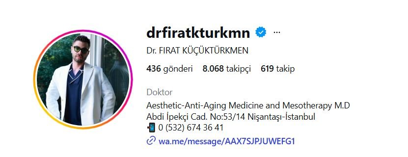 Hastalarına Nişantaşın’da bulunan muayenehanesinde hizmet veren ünlü Medikal Estetik hekimi Dr. Fırat Küçüktürkmen, kişilerin ihtiyaç duyduğu işlemleri en doğru şekilde gerçekleştirerek onları doğal bir güzelliğe kavuşturuyor. İstanbul Maltepe Üniversitesi Tıp Fakültesinden mezun olduktan sonra Medikal Estetik alanında yurt içinde ve yurt dışında önemli eğitimler alarak kendini geliştiren ve yıllar içinde edindiği tecrübe ve birikim ile tüm uygulamalarında kusursuza yakın sonuçlar elde eden Dr. Fırat Küçüktürkmen, merkezinde non-invaziv(cerrahi olmayan) yüz estetiği işlemleri, mezoterapi, gençlik aşıları, kök hücre, eksozom gibi son dönemde trend haline gelen işlemlerini gerçekleştiriyor.